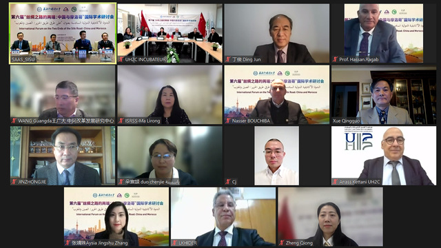 当地时间2022年12月3日,由上海外国语大学主办,上海外国语大学东方语学院、上海外国语大学孔子学院工作处及摩洛哥哈桑二世大学孔子学院联合承办的第六届“丝绸之路的两端:中国与摩洛哥”国际学术研讨会召开,会议以线上视频方式进行,在上海外国语大学与摩洛哥哈桑二世大学孔子学院分别开设两处线下会场。