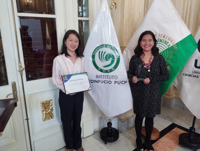 当地时间2022年11月24日,由利马市政府发起的“利马超越”(Supérate Lima)奖学金项目在市政剧院举行了2022年度参与机构表彰纪念会,该奖学金致力于为利马市民提供更丰富的教育机会。秘鲁天主教大学孔子学院外方院长Maribel Temoche和中方院长赵黎虹出席了该仪式。