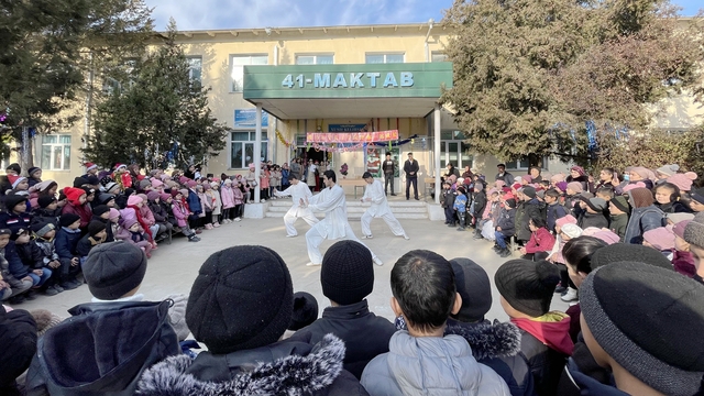 26日,孔院师生代表赴位于偏远山区的41小学,与该校的200余名师生共迎新年。中方院长李晨旭首先向在场师生介绍了撒外孔院的基本情况,并表示孔院作为学习中文和中国文化的平台,致力于伴随学子们一起成长,为大家插上梦想的翅膀。随后孔院师生表演了刚柔并济太极拳、古色古香的中国舞等节目,带有浓厚中国特色的表演赢得孩子们的阵阵掌声。该小学的孩子们也表演了诗歌朗诵以及乌兹别克传统舞蹈等,现场气氛轻松愉快。最后,孔院师生鼓励他们在新的一年里学习进步,早日实现梦想。