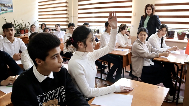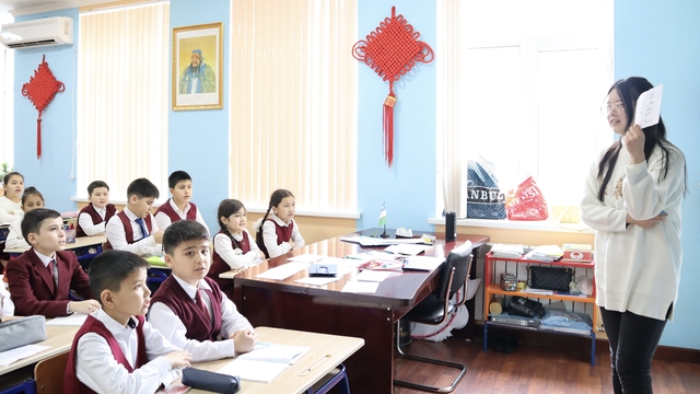 当地时间2月7日,撒外孔院举行45中教学点开课仪式。撒外校长图赫塔西诺夫、撒马尔罕市政府教育负责人玛鲁波娃、45中校长达尼洛娃、孔院及45中师生代表50余人参加了开课仪式。45中校长达尼洛娃首先致辞,她对撒马尔罕市政府、撒外和孔院积极推进开设中文课程表示感谢,并表示经过前期宣传,选拔了30名有外语学习意愿的学生作为首批中文兴趣班学员,相信同学们会在孔院教师的帮助下取得突出成绩,为全校其他学生做出表率,从而吸引更多学生来参与学习中文。随后,撒外校长图赫塔西诺夫为学员们讲授了“开班第一课”,他以“外语是通往世界的桥梁”为主题,结合自身学习、工作经历向学生们讲解了要同时重视母语与外语学习、外语对了解和走向世界的重要作用、外语的学习方法和对未来人生规划的积极影响等内容,在场学员们听得非常认真并踊跃地与图赫塔西诺夫校长互动交流。撒外孔院中方院长李晨旭就孔院的基本情况和特色项目向师生们做了介绍,并鼓励学员们在中文的道路上勇往直前,日后有机会到中国实现梦想。45中学始建于1965年,目前有在校生1200余名,孔院将派兰婕、郭峰雨两名教师在此授课,中文也是在该校开设的第一门外语兴趣课程。