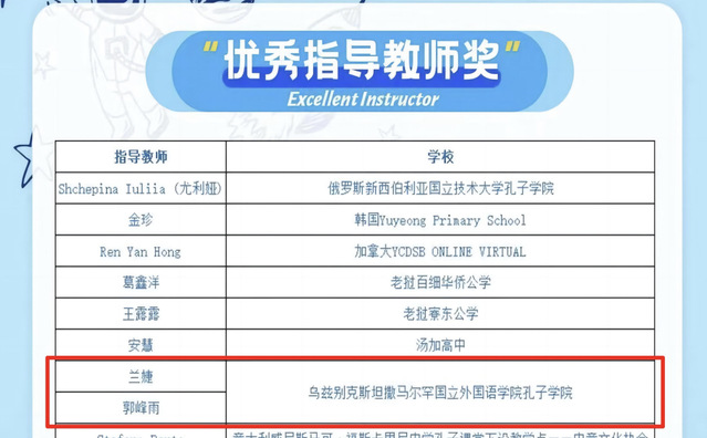 孔院教师兰婕、郭峰雨荣获优秀指导教师奖