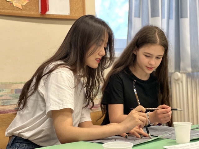 本次“家长日”活动特设脸谱涂色、筷子夹乒乓、写毛笔字等具有“中国风”的文化项目。志愿者们向参加活动的家长和孩子推介了孔院中文课程及课程安排。