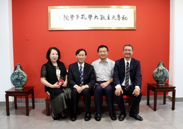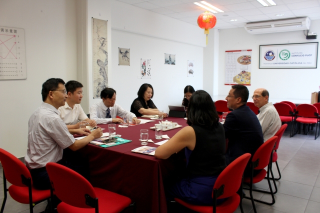 孔子学院特别邀请了秘鲁天主教大学国际交流处制度关系研究室主任和汉学家阿尔伯托∙弗兰德∙诺列加(Alberto Ferrand Noriega)先生参加座谈。双方共同商讨两校间未来合作计划,并探讨与本地汉学专家学者在国别教育研究和区域国别研究领域开展项目合作。