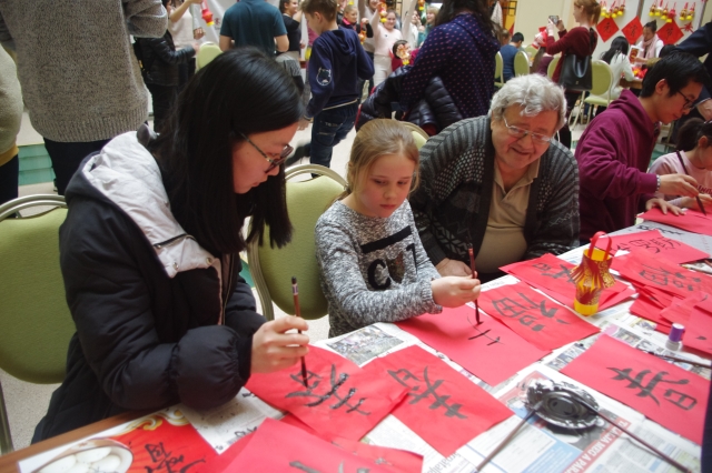 虽然素有“阳光之城”美誉的赛格德城正处在大雪纷飞的“冬季冰冻的门槛”(注:裴多菲的诗句),但前来参加活动的学生和当地民众络绎不绝、兴趣盎然,大家积极踊跃地参与到各项文化体验活动当中,现场处处洋溢着生机盎然的春天气息。