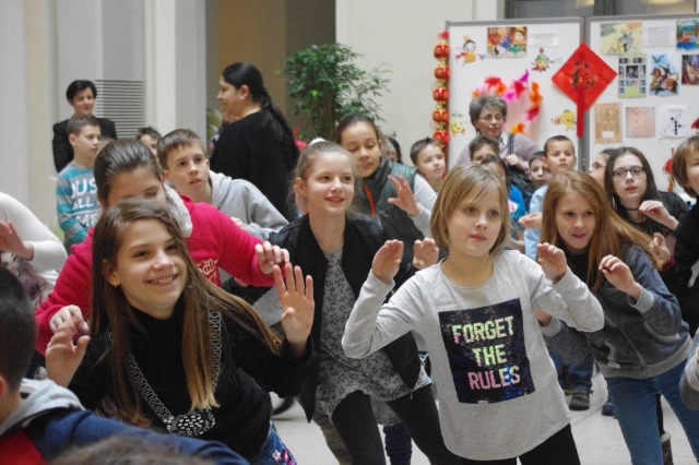 接下来由来自孔院下设教学点Ságvári小学和赛格德大学附属Jugyu小学可爱的学生们为大家演唱了《新年好》、《两只老虎》、《你好歌》等热闹欢快的中文儿童歌曲,立刻点燃了活动的气氛。