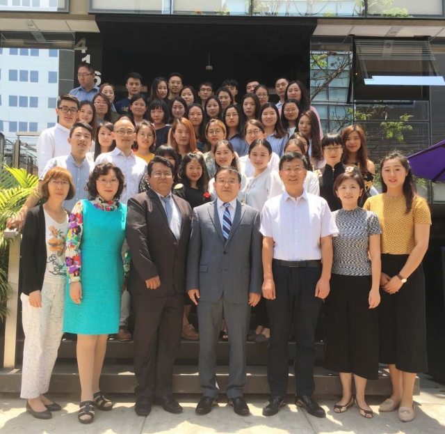 当地时间3月18日,秘鲁汉语教师、志愿者及留学生迎新会成功举办。中国驻秘鲁大使贾桂德、政务参赞李昀、文化参赞朱晓燕、秘鲁天主教大学孔院中方院长黄皓、里卡多·帕尔马大学孔院中方院长杨翠英、中华三民联校校长里卡多·马丁,以及在首都利马的公派教师、汉语志愿者及留学生代表共50余人欢聚一堂,就汉语教学、文化活动推广、在秘生活经验和秘鲁文化习俗等话题进行深入交流。