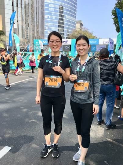 在此次马拉松比赛开始之前,孔院教师曾思和王晨都很“忐忑”。她们表示,平时虽然也有跑步锻炼的习惯,但是跑如此长的距离还是第一次,幸好在比赛过程中,有教师同行们的加油打气、赛道补给队员的热心帮助和热爱运动的参赛者们的相互鼓励,她们勇敢地坚持了下来,并拿到了人生第一块半程马拉松完赛奖牌。她们还表示,本次赛事让她们有机会与更多的各国运动爱好者交流,感受人们对生活的热情,找到与“利马”相处的更精彩的方式。