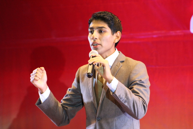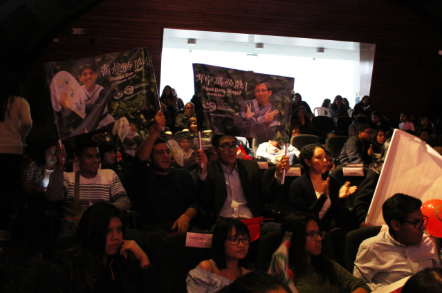 秘鲁天主教大学孔子学院的许多学生也纷纷前来观赛。他们举着孔院为两位选手定制的横幅为他们加油鼓劲。不少学生跃跃欲试,表示明年自己也要参加汉语桥比赛。