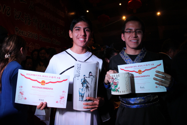 大赛共设中学生、大学生两组,来自秘鲁四所孔院、四家侨校的14位选手参加了本次比赛的角逐。秘鲁天主教大学孔子学院的高越(Jozar Gonzales Coayla)和邓宁思(Dennis Guerrero)参与了大学组的决赛。