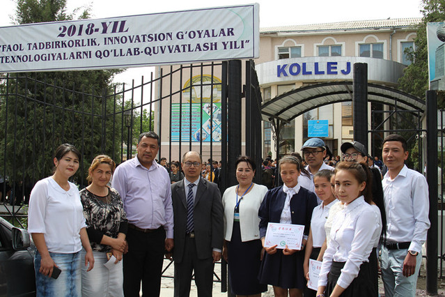 5月12日,撒马尔罕国立外国语学院孔子学院(简称“撒马尔罕孔子学院”)中方院长刘涛和孔院教师一行六人访问了撒马尔罕州布隆古尔地区的四所职业高中:布隆古尔师范和体育职业高中,布隆古尔传统手工业职业高中,布隆古尔吉尔顿农业职业高中,布隆古尔家庭服务业职业高中。
