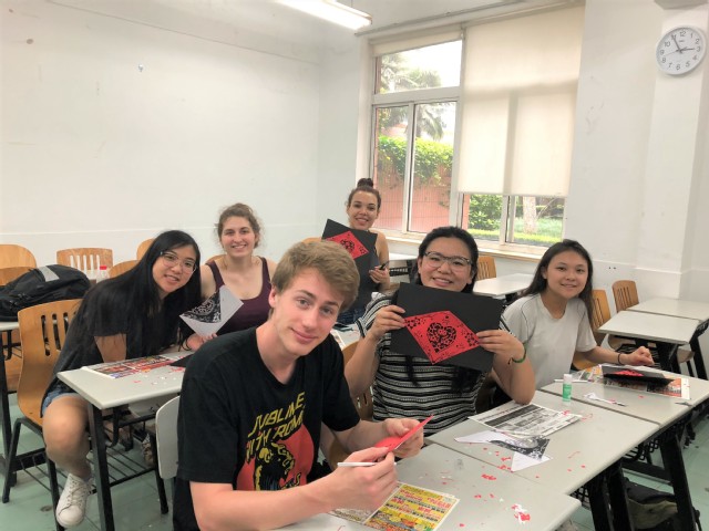 基础汉语课程是此次加拿大滑铁卢孔院学生团的核心。上外为团员们安排了经验丰富的汉语教师,向团员们讲解基础汉语知识并培养他们日常交际会话能力。除了基础汉语课程外,学员们还参加了书法、太极拳、扎染、剪纸等丰富多彩的文化实践体验课程,深度了解中国传统文化技艺。此行还安排了中加学生交流会,加拿大滑铁卢大学学生与上外学子一起,交流探讨两国的生活与文化。同龄人间的交流拉近了彼此的距离,也更加真实生动地了解了彼此的国家。