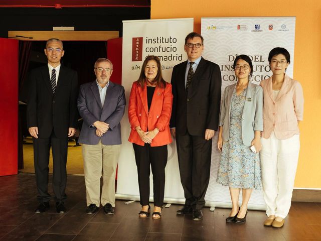 当地时间2023年9月23日,西班牙马德里孔子学院举办了“孔子学院日”庆祝活动。中国驻西班牙大使馆教育参赞赵伟民、文化参赞贺踊、马德里自治大学校长阿玛娅.门迪戈切(Amaya Mendikoetxea)、中国文化中心主任杨长青、亚洲之家主任埃米利奥.德.米盖尔(Emilio de Miguel)、马德里孔子学院外方院长杨德(Andreas Janousch)、前外方院长孙歌迪(Gladys Nieto)、中方院长章艳,以及候任中方院长陆恺甜出席了此次活动。