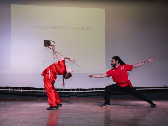 在文艺表演环节,丹尼尔 ? 菲力克斯(Daniel Félix)用古琴和萧演奏了“阳关三叠”、西班牙“武之禅”武术团队则为大家表演了“太极拳”“功夫茶”和“舞狮”,给在场观众留下了深刻的印象。之后,章艳院长和赵伟民参赞共同为2022-2023学年孔院优秀学生颁发奖学金。
