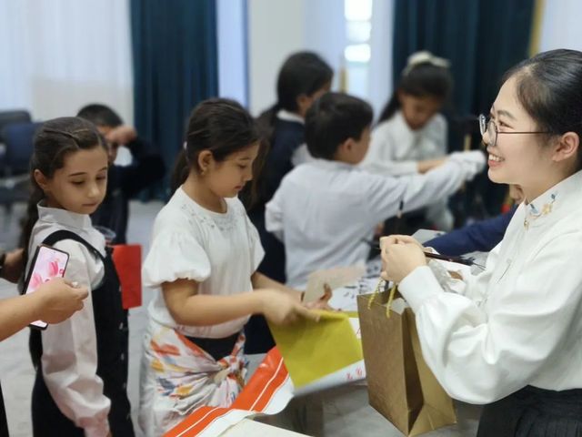 本次孔院日活动主题为“学好中文、拥抱未来”,因正值杭州亚运会期间,活动以一段亚运会宣传片开始,同时从历史文化和高科技两个维度向师生们介绍现代中国;在互动环节中,除了书法、剪纸、茶艺、绳结、中华服饰展示等,未来学校的师生们热情与孔院教师交谈,询问中国的城市发展、去中国的留学机会、学习中文的适用教材等等。