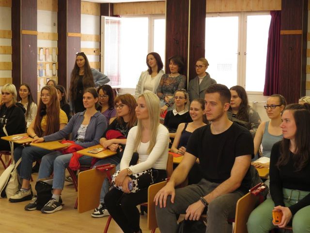 品茶吟诗过后,孔院教师张思羽为参访师生介绍了赛大孔院的中文教学、文化活动情况。随后,帕兹马尼大学中文系师生和孔院初级班的学生进行了交流。谈及“为什么学习中文?”同学们各抒己见,有的同学是出于对中国文化的兴趣,有的同学是喜欢挑战传说中最难的语言,还有同学是希望通过学习中文获得更好的职业发展机会。交流时间短暂,大家都意犹未尽,希望以后能有更多的机会一起学习和分享关于中文和中华文化的学习心得。