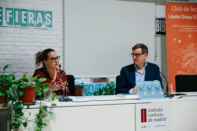 当地时间2023年10月9日,马德里孔子学院在丽池公园(Eugenio Trías Retiro)图书馆举办了陈春成首部短篇小说集《夜晚的潜水艇》西班牙语译本读书会活动。活动由马德里孔子学院外方院长杨德(Andreas Janousch)主持,中方院长陆恺甜出席,该书西班牙语译者之一特蕾莎∙特赫达(Teresa Tejeda)主讲。特蕾莎∙特赫达曾在北京大学和北京语言大学任教,目前在萨拉曼卡大学教授中国语言文学,曾翻译过周大新的《银饰》和萧红的《生死场》等作品。