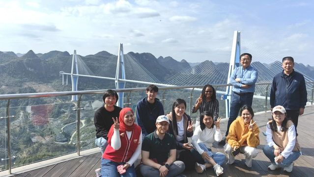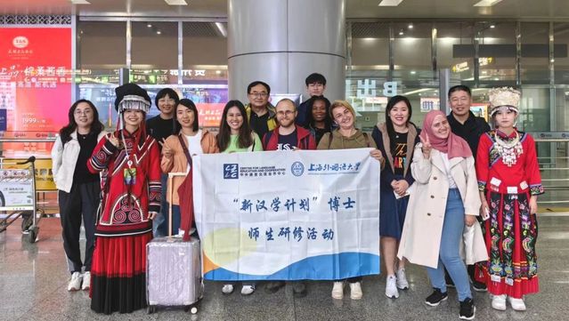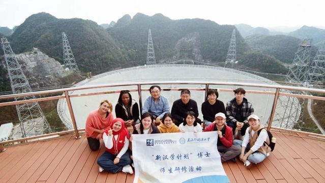 2023年10月27日至29日,上海外国语大学孔子学院工作处组织首次“新汉学计划”博士生研修活动。来自亚洲、非洲、欧洲8个国家的博士生和导师齐聚贵州,用三天时间走访瑶族、水族文化村落,进行非遗体验;参观“中国天眼”科普基地和“天空之桥”,感受中国现代科技、桥梁工程的发展。博士生们的研究领域涵盖国际关系、国别区域研究、国际中文教育等,他们以中文为桥,碰撞学术火花,探讨跨文化研究新思路。