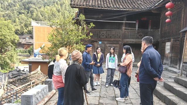 此次研修的最后一站,博士生们来到贵州三都水族自治县,参观了苗族、水族的居住地,了解了两个民族杂居融合的文化变迁,学习了两个民族不同的建筑风格,并尝试了书写被称为中国神秘天书的“水书”。缅甸籍博士生杨顺仙感叹,贵州方言与缅甸语在语调、部分词汇上有一定的相似性,来到这里仿佛成为了“老乡”。柬埔寨籍国际中文教育专业的博士生蔡宝利也借此机会与导师吴春相教授讨论了当地方言特色,他说,“这次研修活动给我留下了很多难忘的时刻,也让我和导师之间的关系更加紧密了”。