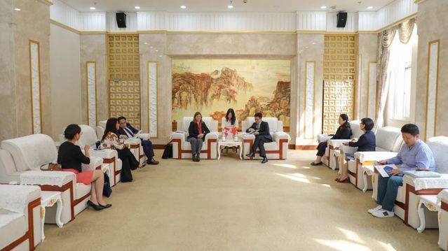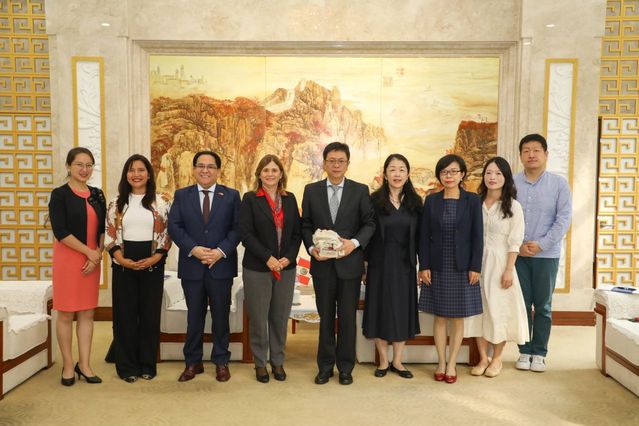 10月25日,秘鲁天主教大学副校长克里斯蒂娜·德尔·马斯特罗·维奇奥(Cristina Del Mastro Vecchione)一行访问上海外国语大学。上海外国语大学校长李岩松在松江校区国际教育中心贵宾厅会见来宾。秘鲁驻上海领事馆总领事大卫·加马拉(David Guillermo Gamarra Silva)出席。