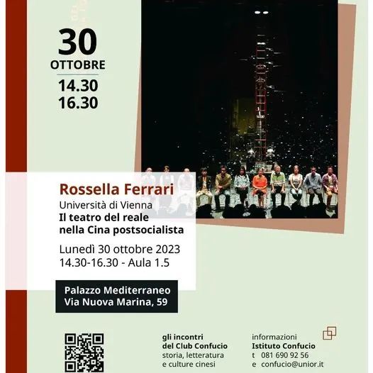 孔子俱乐部是那不勒斯东方大学孔子学院品牌文化活动,论坛会定期邀请来自意大利国内外中国学专家做主讲嘉宾,内容涉及中国历史、文学、电影、媒体和文化等多方面内容。2023年秋季学期俱乐部论坛将以“面具、戏剧和喜剧:传统与前卫之中国戏剧面面观”为主题,系统深入地介绍中国戏剧,听众们将有机会全面了解中国戏剧的历史和文化。