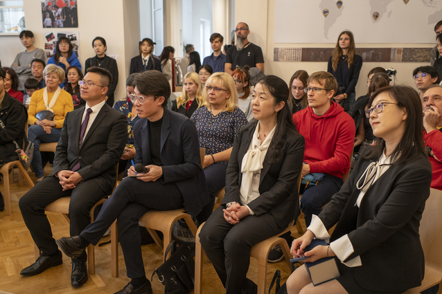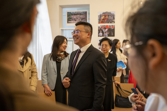 上海外国语大学副校长衣永刚、赛格德大学副校长玛尔达·赛尔(Márta Széll)、博物馆馆长奥托·福加斯(Ottó Fogas)参加开幕式并致辞。衣永刚在致辞中强调了共建一带一路、促进“五通”对今日世界的重大意义,并对匈牙利孔院主办的展览获得各方支持表达感谢。玛尔达·赛尔表示赛格德大学将与孔院继续密切合作,将国际中文教育推广到匈南地区。奥托·福加斯介绍了博物馆今年来举办的与中国文化相关的活动,他还表示此次“庆典展”所呈现出的现代丝绸之路成果是对博物馆早前举办的中国汉代文物精品的有力补充。