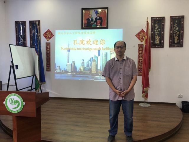撒马尔罕孔院中方院长刘涛向新生们介绍了孔子学院的发展历程和现状,鼓励学生们学好汉语,做中乌友谊的使者;孔院教师彭鑫葛讲解了HSK和HSKK考试情况,以及孔院奖学金申请办法;孔院乌方助理胡山(Husan)介绍了孔院课程和报名方法。
