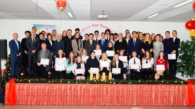 龚韬指出,语言是探索中华文化深厚魅力之桥,也是推动东西方文明交流互鉴之桥,更是促进中匈两国合作共赢之桥,他鼓励同学们更加努力学好中文,更多了解中国,做传承发展中匈友好合作的贡献者。