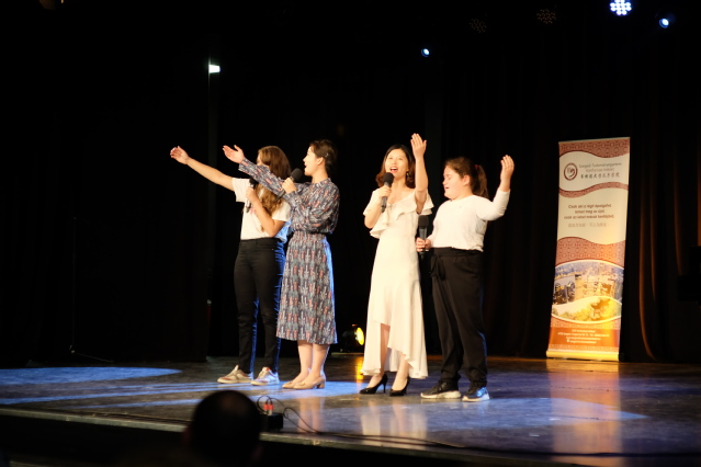 朗诵结束后,赛格德大学孔院汉语教师志愿者金晔、黄璐和科苏特(Kossuth)小学的两位学生为观众献上了中秋佳节的传统歌曲——《但愿人长久》。汉语教师志愿者们身处异乡,以此曲遥寄对祖国与家人的相思和祝福。