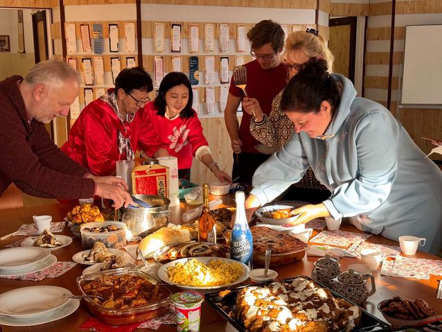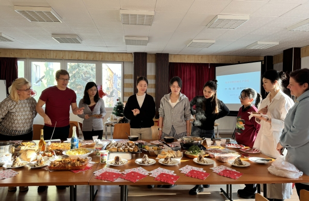 当地时间2023年12月14日及17日,匈牙利赛格德大学孔子学院于孔院本部多功能厅分别举办两场美食文化联谊活动,与赛格德大学人文学院教师、中国留学生、孔院书画班师生一起,分享美食文化,庆祝圣诞与新年。