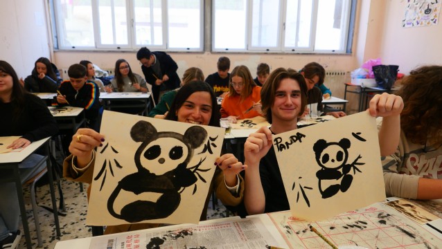 当地时间2023年11月30 日至12月21日,意大利那不勒斯东方大学孔子学院先后前往5所中学教学点开展了“‘筷’乐学中文、水墨画熊猫——中国传统文化进校园”体验活动,累计数百名学生参与其中。