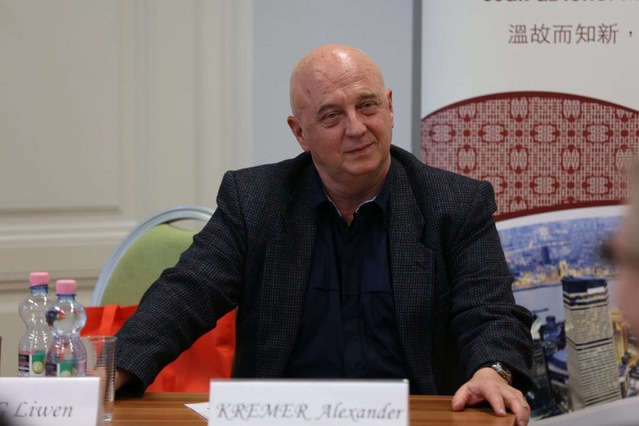 在上午的主旨报告环节,赛格德大学哲学系的亚历山大·柯立默(Alexander Kremer)教授阐述了理查德·饶蒂(Richard Rorty)的种族中心理论(ethnocentrism)和约翰·杜威的实用主义对处理当今国际政治、经济和文化关系的现实意义。