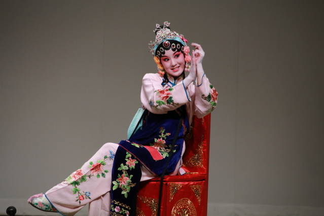 致辞后,李教授为大家献上了经典剧目《春闺梦》。本唱段表达了在公元2世纪汉末的战乱中,人民对安定和平生活的期盼与向往。优雅的程派唱腔传达了京剧“写意寓情”的艺术特征,观众们也深深陶醉其中,拍手连连。