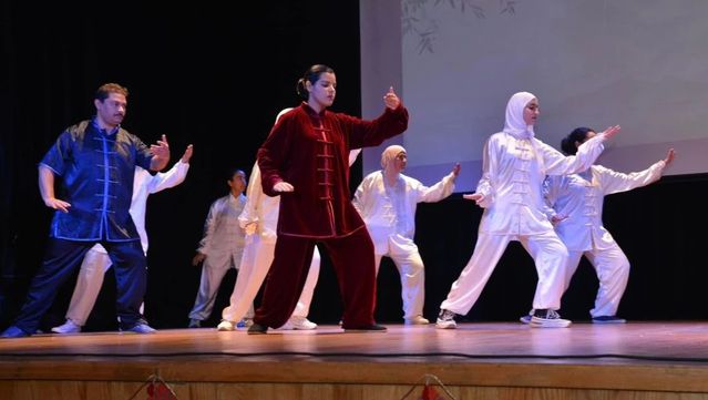 孔院朗诵队的《启航》、合唱团的《勇气》、太极队的《太极之道》、舞蹈团的群舞《戏传》等表演为观众们献上了一场视听盛宴。随后的歌曲串烧《中摩一家亲》,既有耳熟能详的中国歌曲《童话》、《月亮之上》,又有摩洛哥家喻户晓的歌曲《巴比伦·阿扎尼亚》 بابيلون الزينة、《法蒂玛的加扎勒》 لغزال فاطمة、《国王的女儿》بنت سلطان,不同的语言、不同的文化在此刻交融、碰撞,迸发出别样美丽的火花。