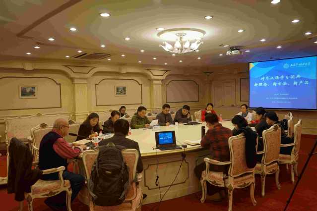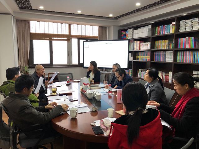 随后第二天郑博士与词典组工作专家教师在高翻基地会议室进行了《孔子学院学习词典》项目内部交流讨论会。交流会上郑博士与上外词典工作组专家教师们一起对现阶段词典的问题展开了讨论并就如何推进和开展《孔子学院学习词典》项目下一阶段的工作提出了建设性意见。