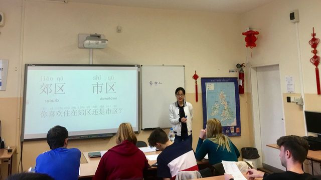 15日,在赛格德大学孔子学院中外方院长王磊和李察德的陪同下,罗兰大学孔院一行前往孔院教学点Eötvös高中、Radnóti高中、Kossuth小学、Gregor小学以及赛格德大学观摩了六位老师共计七堂不同层次、不同课型的汉语课,并在课后与任课教师进行了交流。