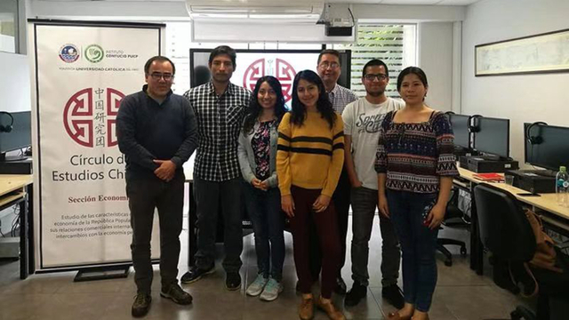 当地时间11月24日,秘鲁天主教大学孔子学院中国经济研究团成立。本研究团由孔院中外方院长黄皓和邓如朋(Ruben Tang)发起,秘鲁天主教大学经济系教授何塞·盖亚·古(José Gallardo Ku)作为导师,由秘鲁天主教大学学生马里约·莱昂(Mariel León)、费尔南德·门多撒(Fernando Mendoza)等对中国经济发展感兴趣的七人组成,这是继中国文学研究团、中国法律研究团之后孔院设立的第三个中国学研究团队。