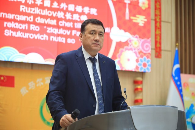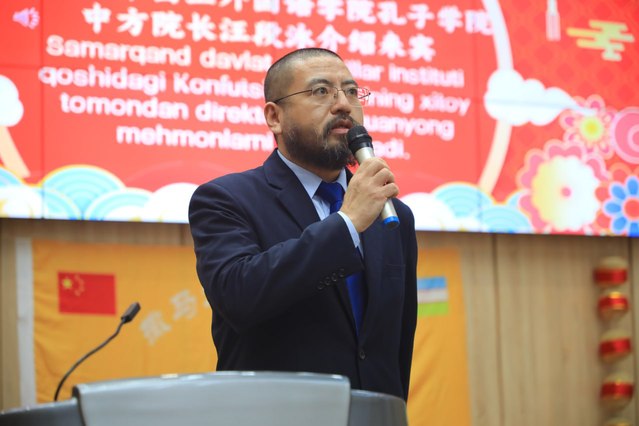 撒马尔罕国立外国语学院校长鲁齐库洛夫(Ruzikulov)、丝路大学副校长杜纳巴耶维齐(Danabayevich)参加活动并发表致辞,祝愿参加本次游园会的各界人士和全体中国人民元宵快乐、龙年吉祥。