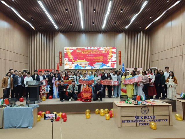 当地时间2024年2月24日,撒马尔罕国立外国语学院孔子学院(下称“撒外孔院”)联合“丝绸之路”国际旅游与文化遗产大学(下称“丝路大学”)共同举办了以“喜乐元宵·万事兴‘龙’”为主题的“欢乐春节”元宵游园会,本次游园会在丝路大学大礼堂举行,约300余人参加了活动。