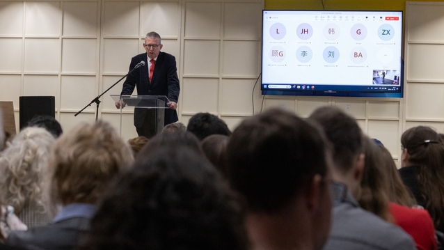 中华人民共和国驻匈牙利大使馆韩冬升参赞致辞,鼓励与会者在教育数字化的新赛道上勇于探索,以数字化促进国际中文教育高质量发展,努力满足匈牙利的中文学习需求。匈牙利赛格德大学副校长扎卡·彼得(Zakar Péter)表示,中匈关系十分重要,赛格德大学与上海外国语大学合作近十二年,赛格德大学将全力支持在匈的中国科技与文化工作人员。赛格德教育区中心主任朱迪特·普列索夫斯基尼·乌伊法鲁奇(Plesovszkiné Ujfaluczki Judit)总结了赛格德地区中文教育的蓬勃发展,祝贺厄特沃什中学即将在秋季新增高级中文学习项目。