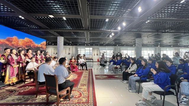 春令营团组先后参观了万桐书木卡姆文献馆、中华传统乐器馆、丝绸之路艺术史馆、中华文化体验馆等文化艺术场馆,观看木卡姆演出、重走丝绸之路艺术发展历程,沉浸式感受非遗魅力、感悟丝路千年风华。中乌青年还在舞蹈学院实验剧场观看了由新艺师生表演的舞蹈《阳光下的麦盖提》《铅华·满壁》《朱拉》等,零距离体验了新疆舞蹈。