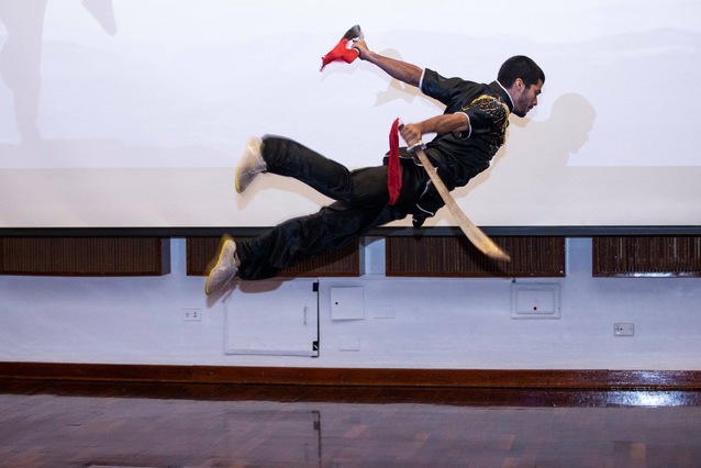 作为第六个节目,陈式太极拳把大家从优美的古典舞蹈和乐曲里带进传统的中国武术之中。太极拳在中国有几百年的悠久历史,作为强身健体的方式也受到了世界各地人民的喜爱。南美陈式太极拳协会的成员们,一招一式、一动一静,神气相配,上下相随,不仅为大家带来了精彩的太极拳表演,还进行了现场互动,让到场民众一起感受以柔克刚的中国传统武术的魅力。随后,南美健身气功协会的成员,为大家带来了一段南拳表演,静若伏虎、动若飞龙,缓若游云、疾若闪电,一气呵成、又稳健又潇洒,在场观众无不拍手叫绝!