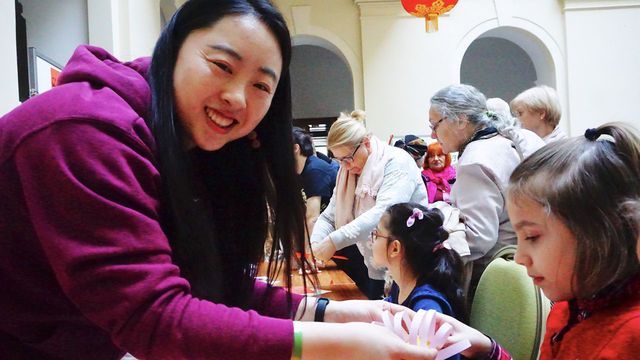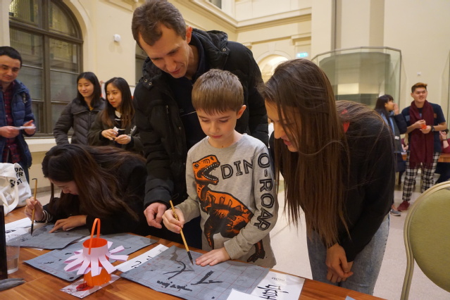 随后是中国文化体验环节,孔子学院汉语教师志愿者们精心准备了具有浓郁中国特色的文化体验活动,其中包括:民俗传统自主探,做灯笼、剪生肖、写福字,在老师的引导下,参与者自主选择,感受中国的民俗文化。