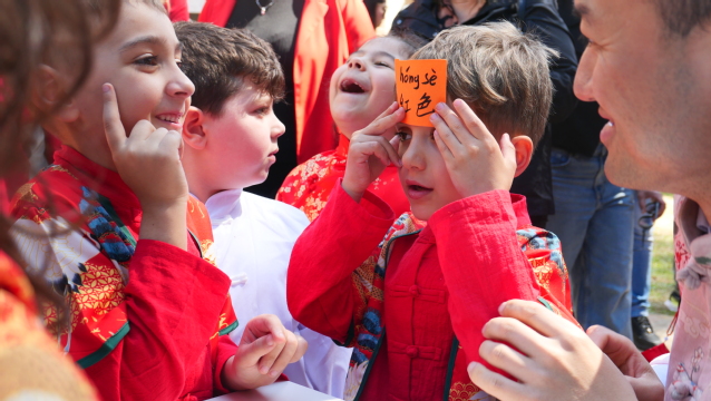 为迎接“国际中文日”,当地时间2024年4月13日,意大利那不勒斯东方大学孔子学院在贝内文托双语小学孔子课堂举办了主题为“一起秀中文”的才艺表演和教学游戏体验活动。贝内文托双语小学校长朱塞佩·钱帕(Giuseppe Ciampa)、孔院中意方院长程洪金、万丽雅(Valeria Varriano)及那不勒斯咏恩中文学校校长曹勇出席了活动。