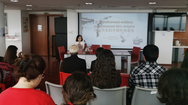 当地时间4月22日,亚里士多德大学孔子学院中方院长鲍晓英、希方院长罗兰、上海外国语大学希腊语教研室主任胡晶晶在亚里士多德大学为大学外语教学中心的大学生们带来中国文化系列讲座。