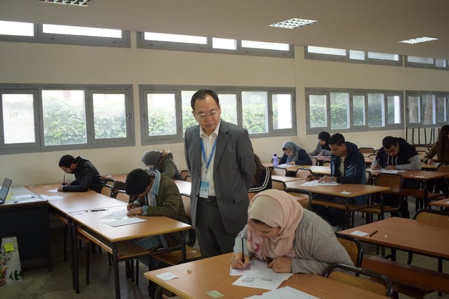 为保证哈桑二世大学孔院本学年HSK考试圆满收官,全体教师高度重视,在考前1个月便开始准备考试相关材料。考前,孔院全体教师进行了详细的考务培训,从考试流程、考中注意事项、考后试卷处理等几个方面重温考务守则,确保顺利完成考试的每个环节。考试当天,全体监考教师早早准备好考试材料,有条不絮地组织考生进场。中方院长孔令涛亲临考场全程巡考,在考场为考生们加油打气。