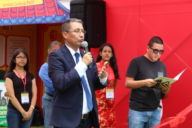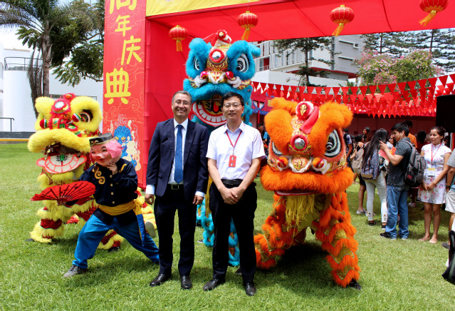 当地时间2019年3月28日,秘鲁天主教大学孔子学院十周年庆典在大学校园隆重举行。秘鲁天主教大学孔子学院外方院长邓如朋(Rubén Tang)、中方院长黄皓、孔院全体教职员工及秘鲁各界友人齐聚一堂,共贺秘鲁天主教大学孔子学院创办十周年。