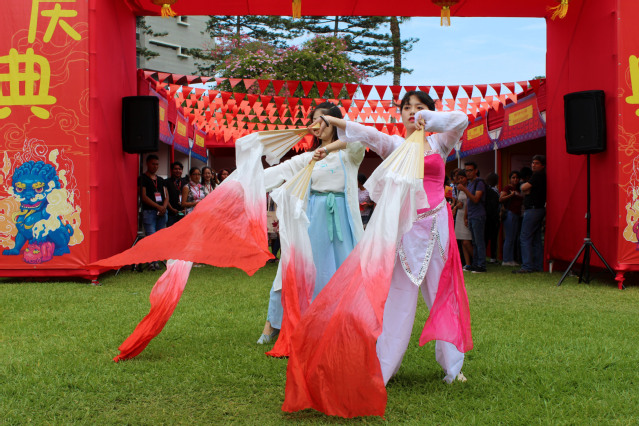 孔院的汉语教师还为观众们带来了精彩的舞乐表演。在中国传统古典《牵丝戏》音韵中,教师们手挥折扇,翩翩起舞,婀娜多姿,展现出中国舞蹈别具一格的柔美。一首古筝《渔舟唱晚》,余音袅袅、绕梁不绝,弹奏出中国音乐自成一体的妙韵。现场观众被中国古典文化的魅力所折服,兴奋地和汉语教师们拍照留念。