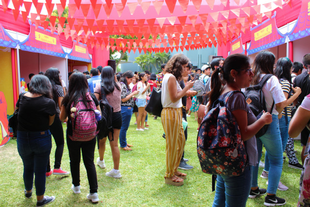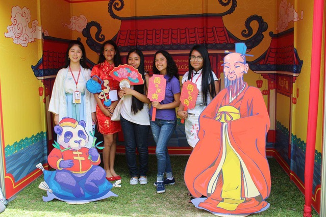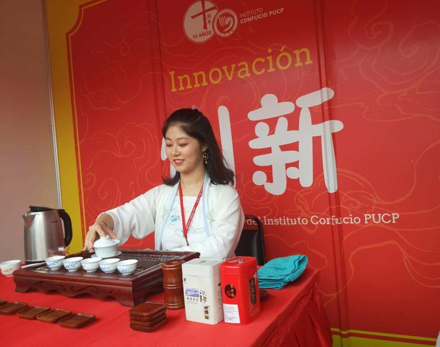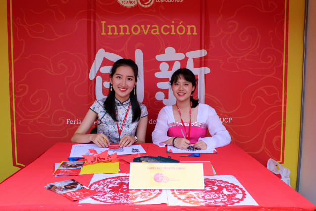 在庆典现场,学生们还可以徜徉在孔院发展图片展览区,浏览秘鲁天主教大学在本土传播中国语言和文化的十年期间的经典照片;在孔子学院图书馆,小憩片刻,品尝一杯香茗,翻阅一本精装中文书籍;或者在“我与中国”拍照区,与穿着中国传统服饰的志愿者或教师们合影留念。此外,现场还设立了抽奖活动,学生们需要回答简单的汉语问题来赢得奖品。不少学生表示,中文非常有意思,今后想要开启汉语学习之旅。