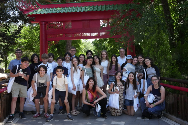 当地时间2024年5月30日,马德里孔子学院携教学点贝阿特里斯·嘉林多中学(IES Beatriz Galindo)学生前往马德里动物园,参加了大熊猫“金喜”“茱萸”与西班牙公众的见面仪式。中国驻西班牙大使姚敬、成都大熊猫繁育研究基地主任尹志东、团结公园集团首席执行官帕斯卡尔·费拉奇(Pascal Ferracci)分别致辞,西班牙王太后索菲亚(Sofía de Grecia y Dinamarca)、马德里市市长何塞·路易斯·马丁内斯-阿尔梅达(José Luis Martínez-Almeida)等嘉宾出席。