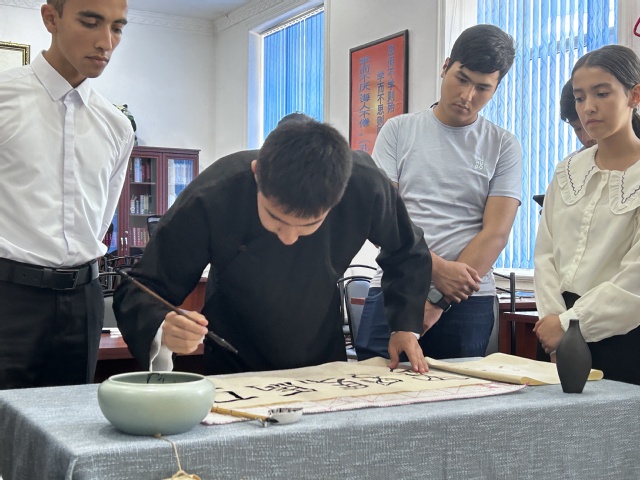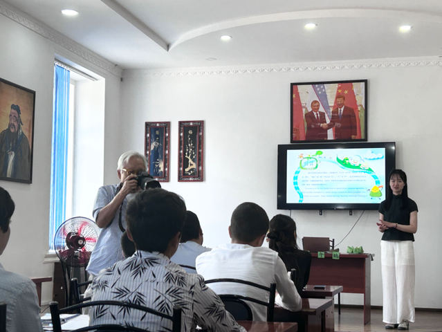 当地时间2024年6月10日,著名摄影家刘香成及其团队来到撒马尔罕国立外国语学院孔子学院进行拍摄采风。
